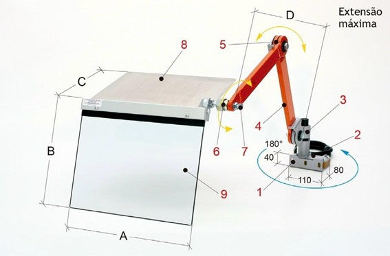 4. Braços articulados - de aço tubular.