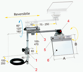 4. Braçadeira articulada para o ajuste horizontal e vertical da proteção.