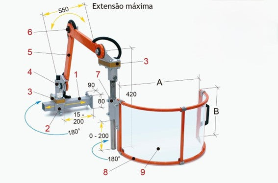 Protege o operador do contato direto com os materiais colocados em rotação do mandril ou porta ferramenta da projeção de cavacos e do líquido de lubrificação e refrigeração.